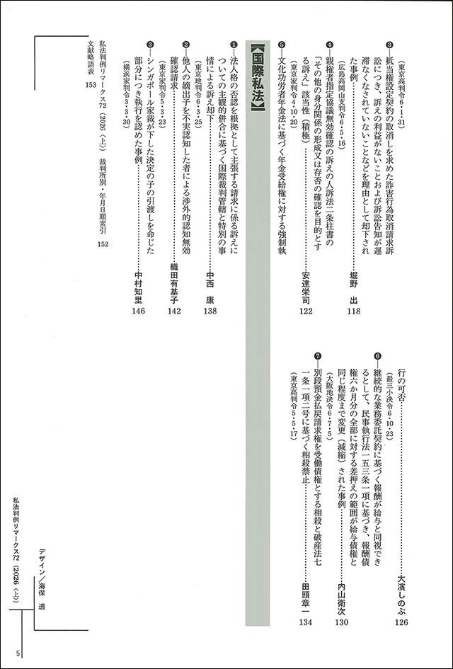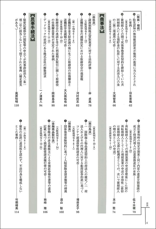 民法・商事法・民事手続法・国際私法の諸分野における各審級の新しい判例を対象として、学理や実務の立場から論評する。